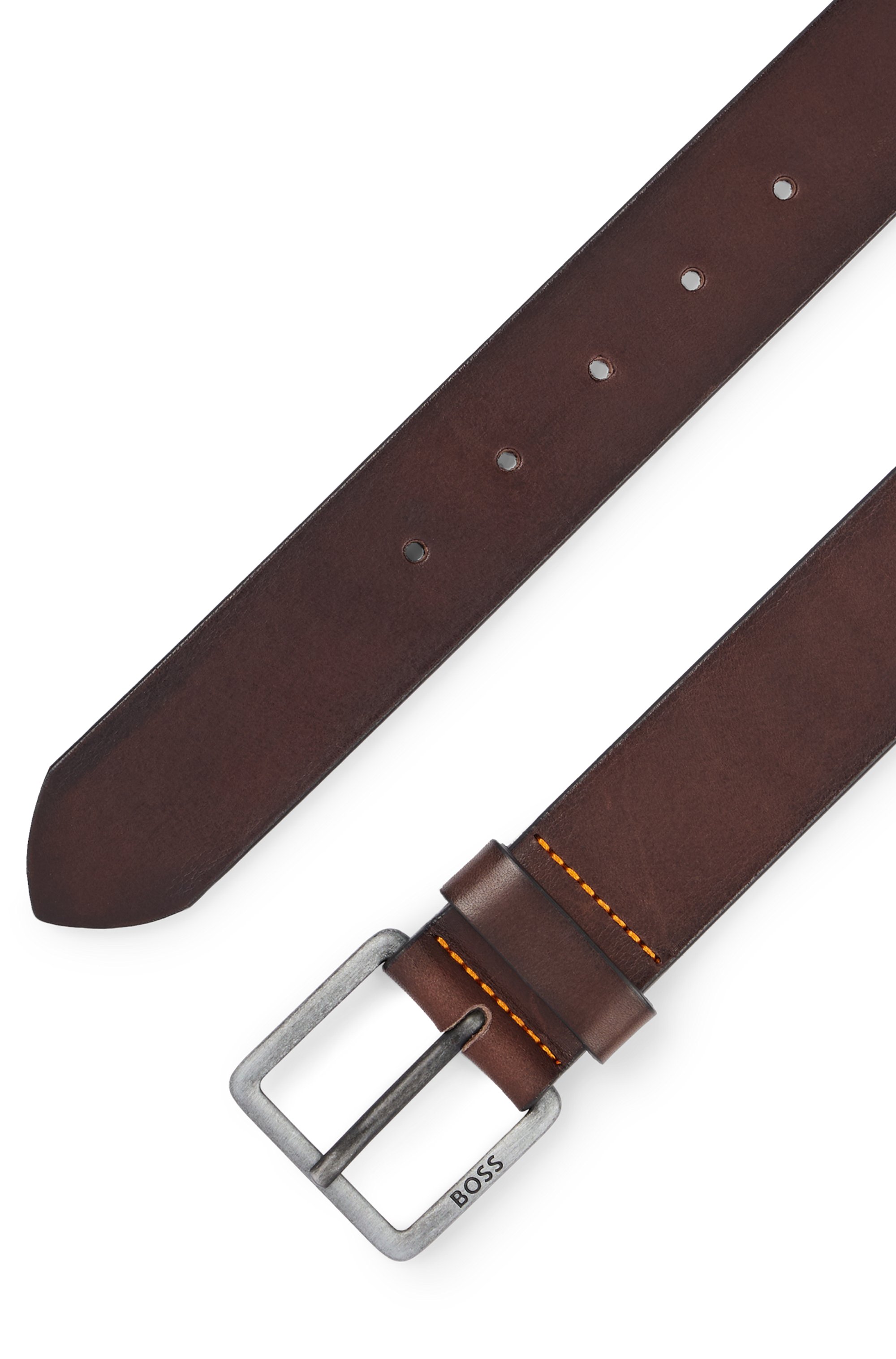 Charakteristischer BOSS Gürtel aus edlem Leder mit 4,0 Zentimetern Breite und Logo-Gravur auf der eckigen Schließe. Für eine optimale Passform sollte der Gürtel eine Größe größer als dein Taillenumfang sein.