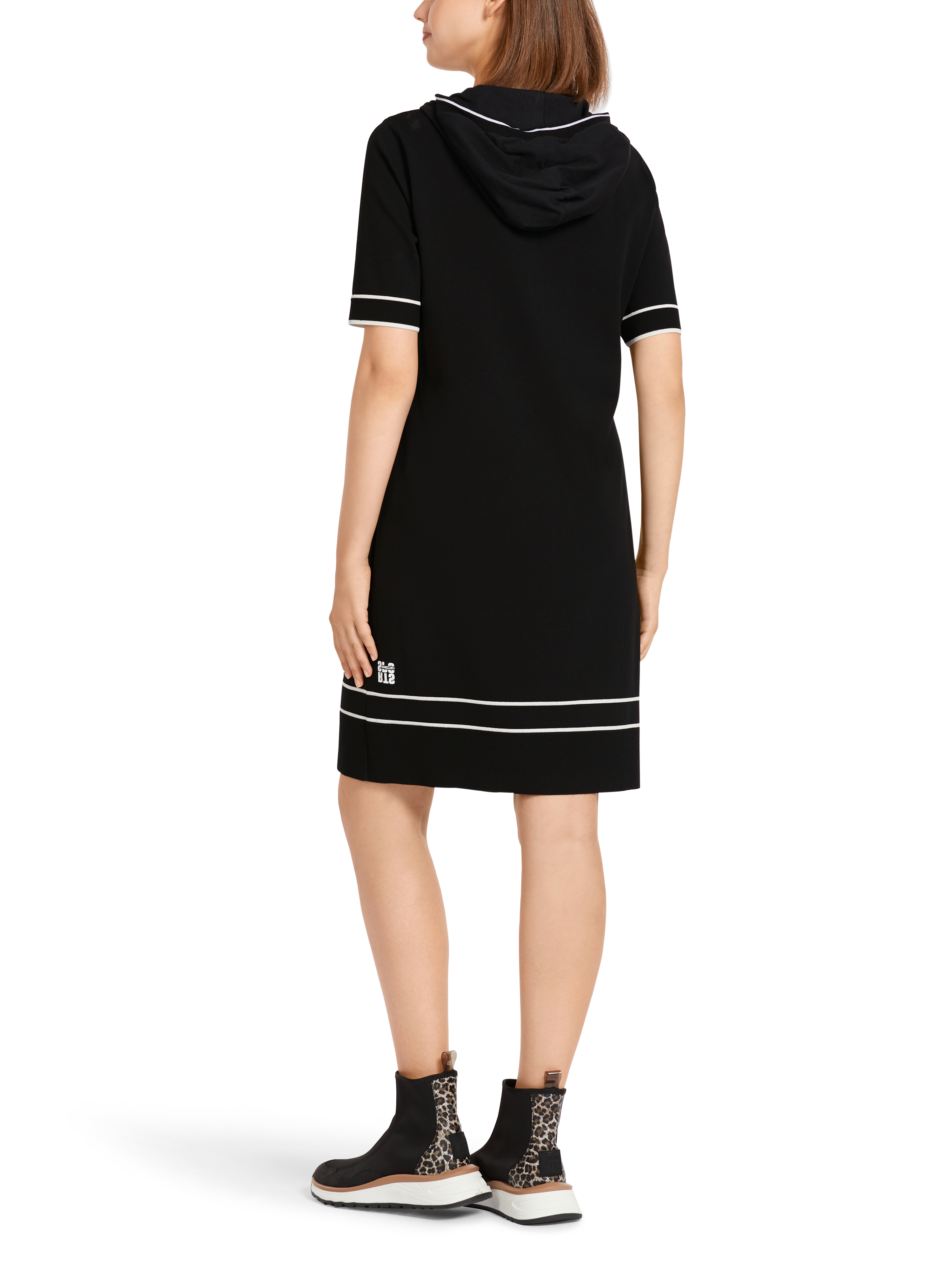 Sportives Kapuzenkleid im Polostil mit O-Ring-Zip. Dieses Kleid aus dem Nachhaltigkeitslabel "Rethink Together" punktet mit seinem soften Viskosematerial und einer großen Kapuze aus Baumwolle. Die Rippstrickbündchen kommen mit kontrastfarbenen Streifendetails. Das Kleid wird am Standort Deutschland gestrickt und auch veredelt. Die Weiterverarbeitung der einzelnen Teile erfolgt in europäischen Partnerbetrieben. Damit ist das Modell "Knitted in Germany".