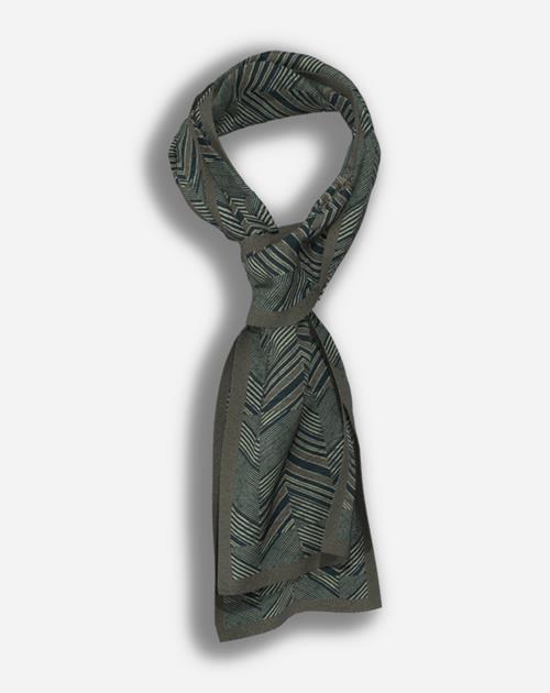 Eleganter OLYMP Herrenschal. Das modisch abgewandelte Fischgrätmuster in Grün schafft ein markantes Accessoire, das auch im Businessbereich überzeugt. Bedruckt wurde eine fein strukturierte Viskosequalität mit unifarbenem Rand. Die Maße betragen ca. 158 x 18 cm Zentimeter und ermöglichen verschiedene Tragevarianten.