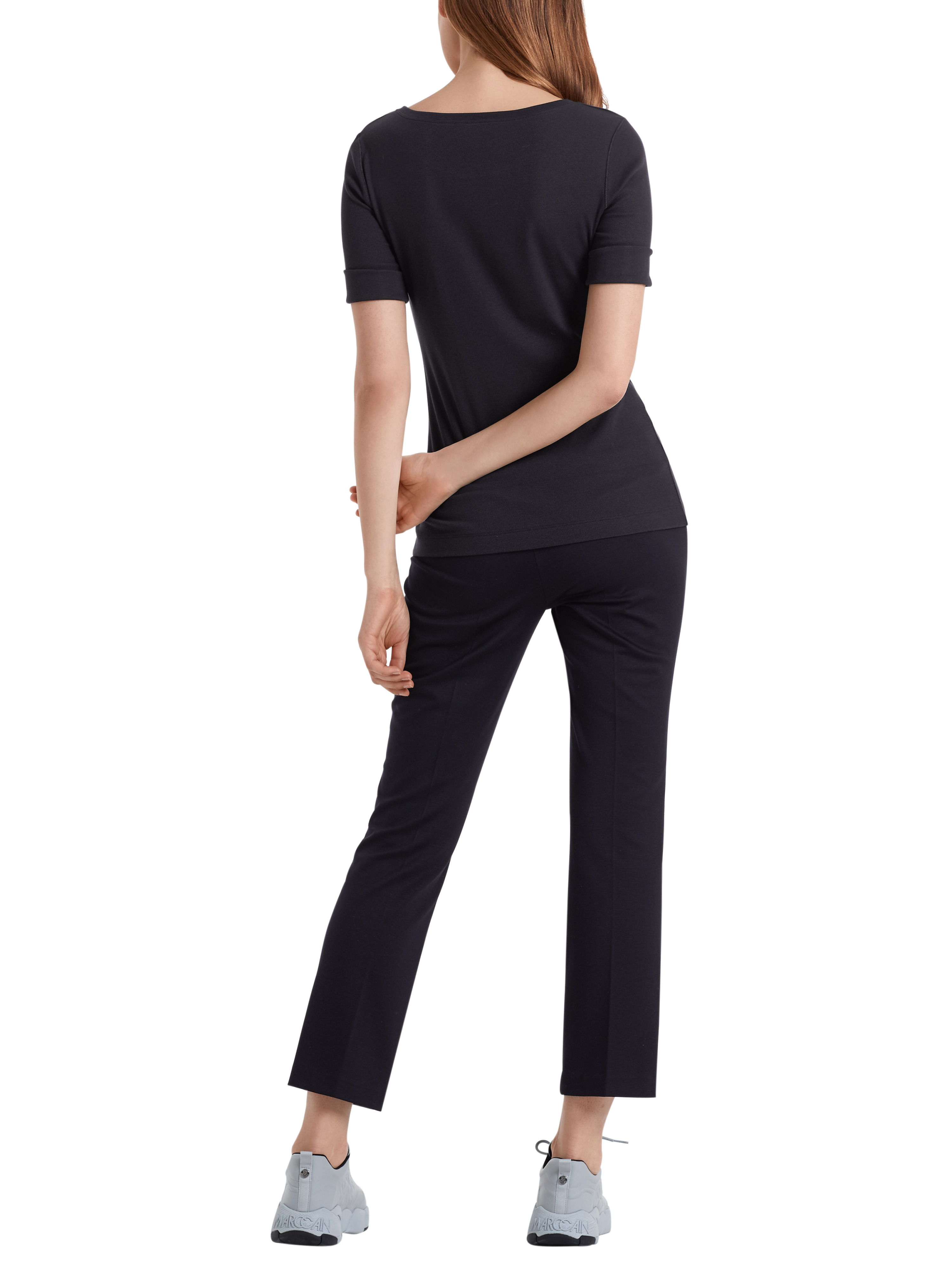Feine Ripp-Optik trifft bei dem Marc Cain Shirt auf ein besonders weiches Baumwoll-Gemisch plus genau dem richtigen Stretchanteil. Tonale Overlocknähte an den Ärmeln schenken dem leicht taillierten Basic einen coolen Touch. Ein Style, der auf entspannte Weise Casual-Stylings ergänzt.