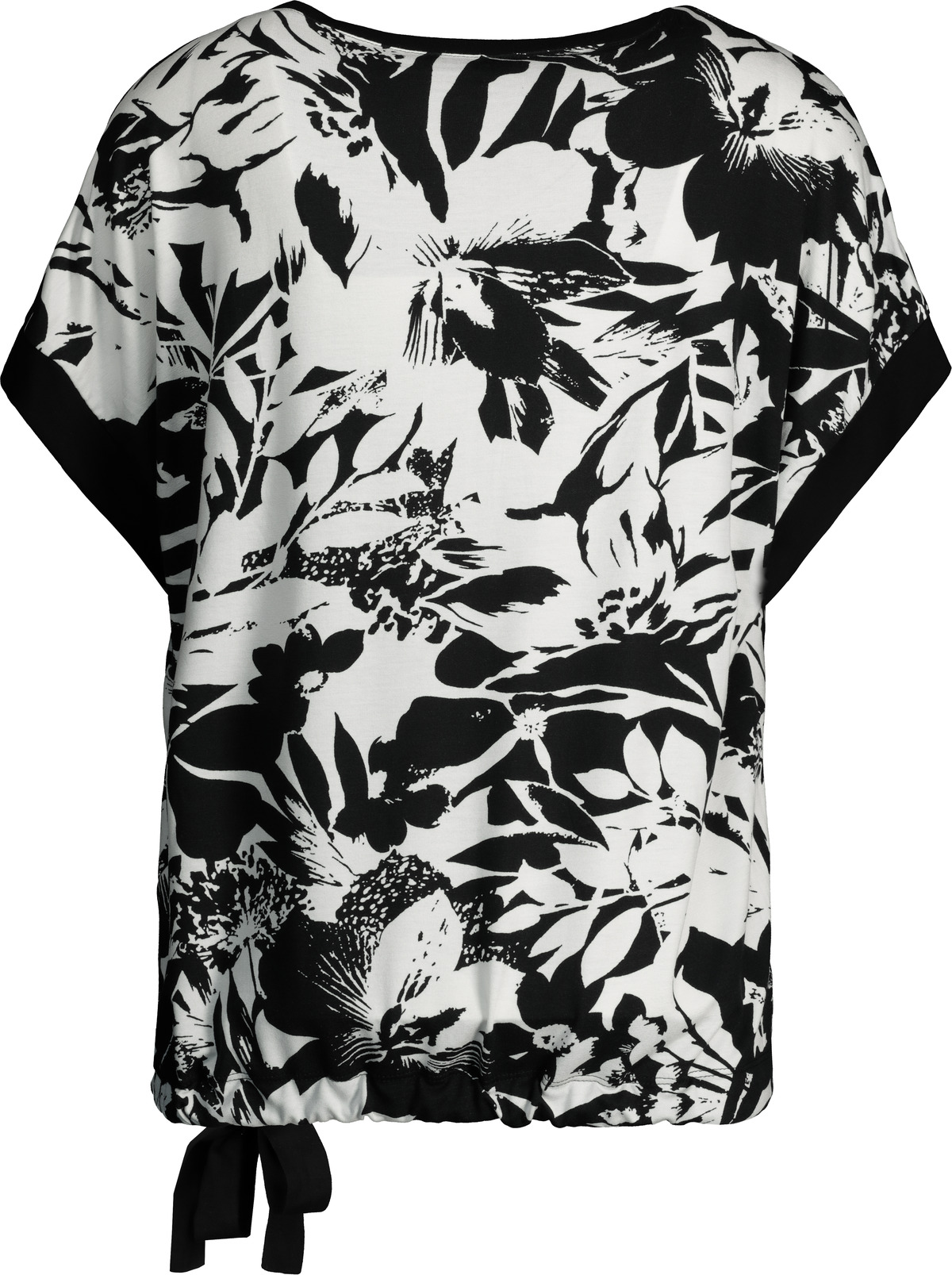 Das monari Blumendruck-Shirt in schwarz-weiß ist aus fließender Viskose mit leichtem Stretchanteil und fühlt sich supersoft und angenehm auf Ihrer Haut an. Die schwarz abgesetzten Bündchen am Rundhals und am angedeuteten, überschnittenen Kurzarm sowie das unifarbene Bindeband am Saum verleihen dem T-Shirt eine sportliche Note. Der Regular Fit sorgt für eine lässige, körperumschmeichelnde Passform.